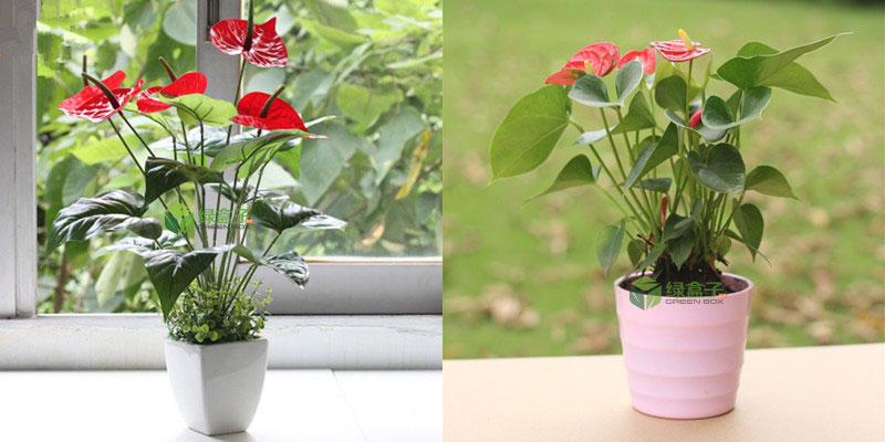 觀賞價值:其花朵獨特,為佛焰苞,色澤鮮艷華麗,色彩豐富,是名貴花卉?;ㄆ陂L,切花水養(yǎng)可長達1個半月,切葉可作插花的配葉??勺髋柙?,盆栽單花期可長達4~6個月,周年可開花。