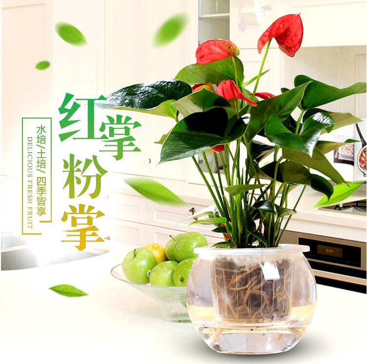 葉子和枝莖外形奇特:其葉顏色深綠,心形,厚實堅韌,花蕊長而尖,有鮮紅色、白色或者綠色,周圍是紅色、粉色,全都有毒。多年生常綠草本花卉。其株高一般 為50~80cm,因品種而異。具肉質(zhì)根,無莖,葉從根莖抽出,具長柄,單生、心形,鮮綠色,葉脈凹陷?;ㄒ干鹧姘炠|(zhì),正圓形至卵圓形,鮮紅色、橙 紅肉色、白色,肉穗花序,圓柱狀,直立。四季開花。