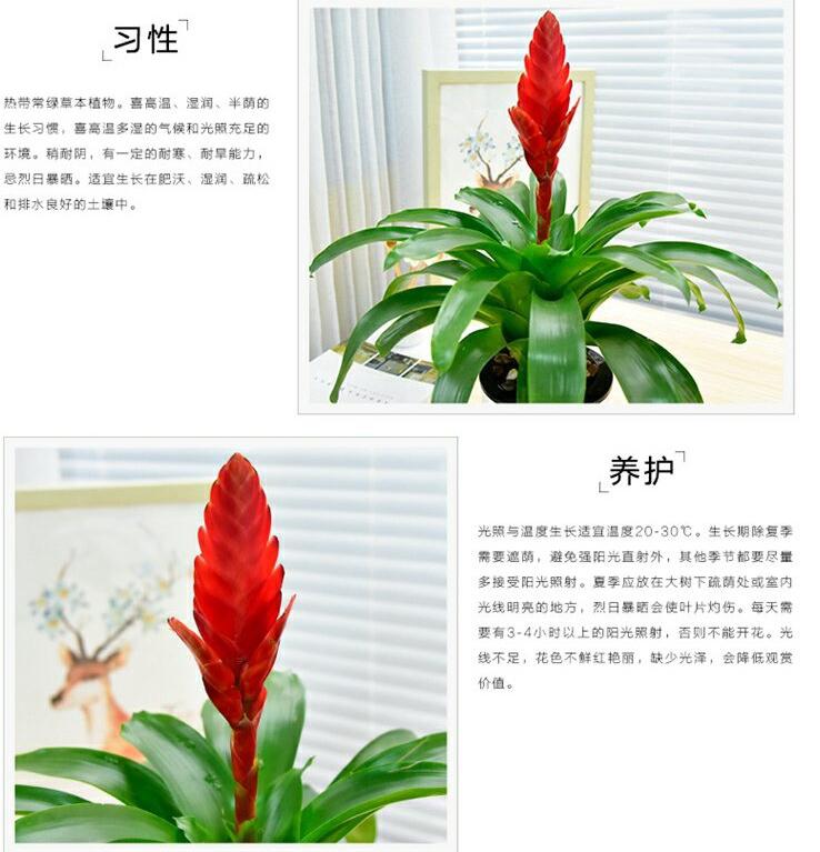 澆水與施肥生長期要注意澆水,經(jīng)常保持盆土濕潤,特別是夏季溫度高,除了澆水外,還要經(jīng)常向葉面噴水,提高周圍空氣濕度,以免干燥引起卷葉。同時(shí)要經(jīng)常保持葉筒中有清潔的水,空氣濕度保持在60%以上。澆水要適量,既不能使盆土過濕,也不能讓盆土過干燥。冬季要減少澆水,盆土以保持略濕潤為宜。除施基肥外,生長期要補(bǔ)施追肥,一般每月施2~3次稀薄的餅液肥,肥要施在盆土山和水槽中。必要時(shí),也可進(jìn)行葉面噴稀薄的液肥,促進(jìn)旺盛生長。冬季不施肥或施少量腐熟的有機(jī)肥。施肥切忌氮肥過多,以免發(fā)生徒長、脈紋褪色等,生長期可每月施用氮、磷、鉀均衡的稀薄液肥一次,花期臨近前,可追施0.2%的磷酸二氫鉀2-3次,使花苞豐滿艷麗,秩末入冬前停肥。