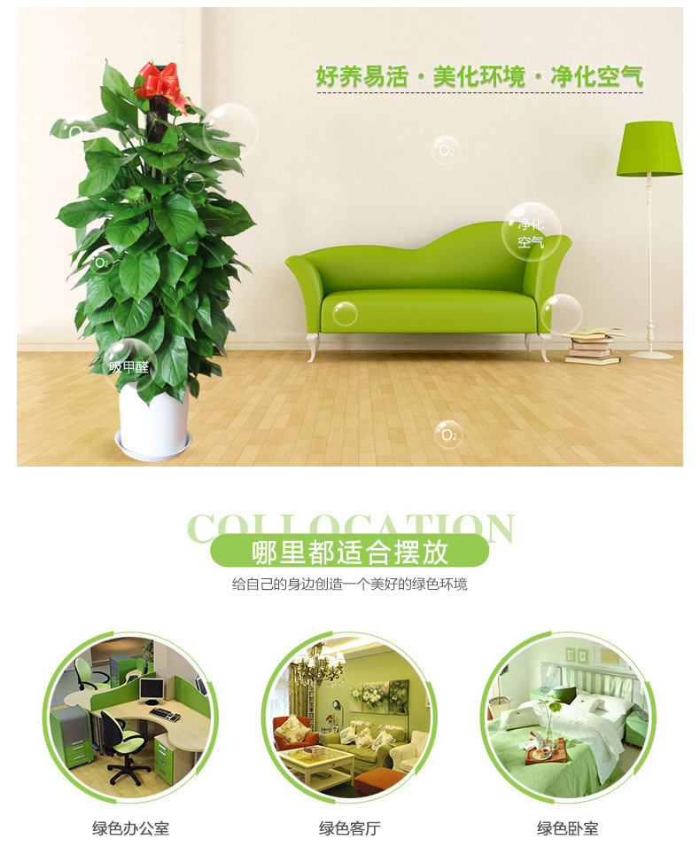 綠蘿是陰性植物,喜散射光,較耐陰。它遇水即活,因頑強(qiáng)的生命力,被稱為“生命之花”。蔓延下來(lái)的綠色枝葉,非常容易滿足。室內(nèi)養(yǎng)植時(shí),不管是盆栽或是折幾枝莖稈水培,都可以良好的生長(zhǎng)。既可讓其攀附于用棕扎成的圓柱上,也可培養(yǎng)成懸垂?fàn)钪糜跁?shū)房、窗臺(tái),抑或直接盆栽擺放,是一種非常適合室內(nèi)種植的優(yōu)美花卉。