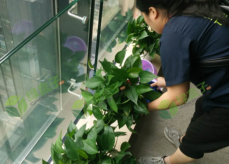 綠盒子養(yǎng)護(hù)工在對(duì)植物進(jìn)行精心養(yǎng)護(hù) 澆水