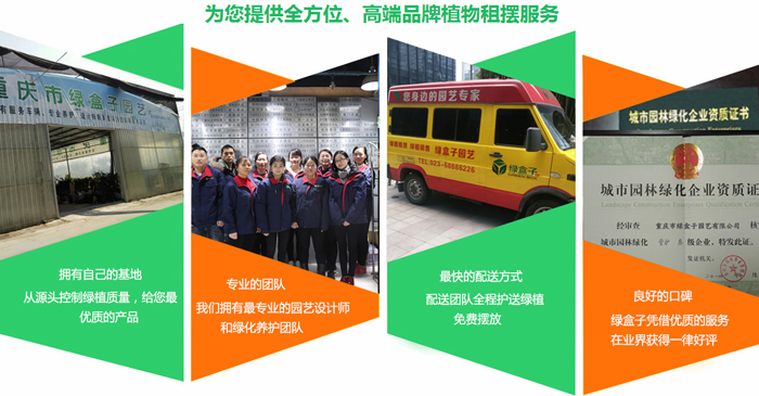 重慶植物租擺公司哪家好?重慶綠盒子園藝有限公司、服務(wù)項(xiàng)目廣泛,口碑良好:綠盒子園藝業(yè)務(wù)遍及重慶主城各大酒店,賓館,商場(chǎng),醫(yī)院,商務(wù)寫(xiě)字樓,商業(yè)網(wǎng)點(diǎn),企業(yè)單位等。具備5000個(gè)服務(wù)項(xiàng)目的經(jīng)驗(yàn),綠盒子園藝擁有自己的綠植基地,專業(yè)的植物設(shè)計(jì)師以及專業(yè)的后期養(yǎng)護(hù)團(tuán)隊(duì),并且公司有專車(chē)配送,公司內(nèi)部有專門(mén)的管理運(yùn)行軟件,保障為客戶建立了更為合理、經(jīng)濟(jì)的植物租賃,養(yǎng)護(hù)等服務(wù)計(jì)劃。