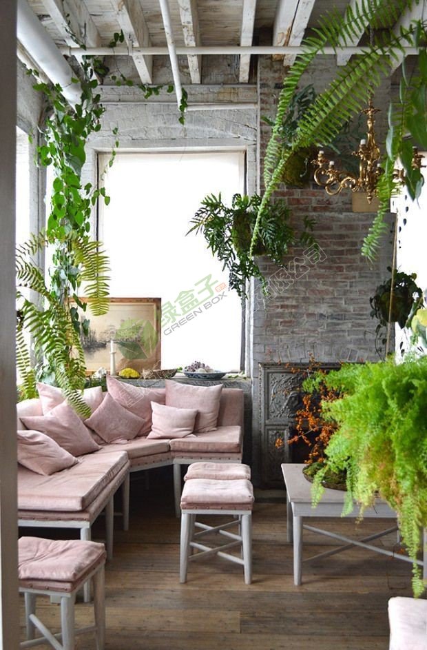 室內(nèi)綠化除了單獨(dú)落地布置外,還可與家具、陳設(shè)、燈具等室內(nèi)物件結(jié)合布置,相得益彰,組成有機(jī)整體。