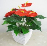 紅掌又名火鶴花、紅苞芋,它葉片翠綠臘色,像一只伸開(kāi)的紅色手掌,在掌心豎起一小條金黃色的肉穗,紅與綠的搭配顯得分外惹眼,黃色的肉穗花鑲嵌在那 一片火紅之中更有畫(huà)龍點(diǎn)睛...